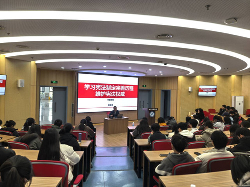 为深入践行习近平法治思想,切实提升学生宪法意识与法治素养,12月4日,经济管理学院邀请镇江市委党校殷亚伟作《学习宪法制定完善历程 维护宪法权威》报告,学院党委书记尹洁主持。殷亚伟阐释了我国宪法制定及发展完...