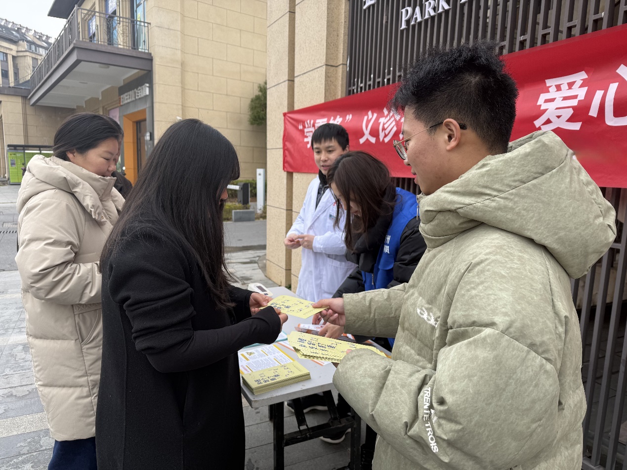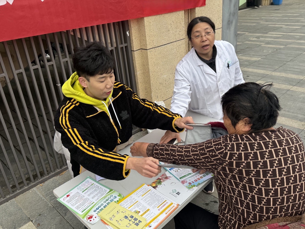 活动中,同学们与官塘社区卫生服务中心的医生共同搭建义诊台,为居民测量血压、血糖,并耐心讲解日常健康管理注意事项。同时在现场发放《家庭健康管理手册》《慢性病预防指南》等宣传单,用通俗易懂的语言向居民普及科学饮食、运动保健知识,让温情的暖流在社区处处流淌。