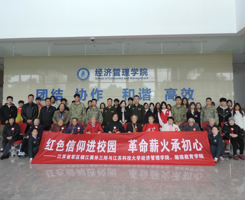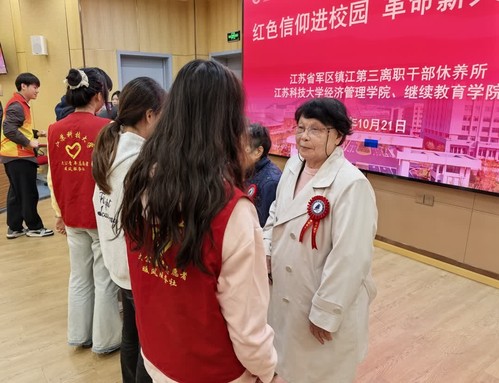 秋阳和煦,菊灿桂香。在重阳佳节来临之际,10月21日,由经济管理学院、继续教育学院与江苏省军区镇江第三离职干部休养所联合主办的“红色信仰进校园,革命薪火承初心”主题活动温情启幕。一场跨越时空的“青春”与“皓首”的对话,在此生动上演。与会人员包括江苏省军区镇江第三离职干部休养所政治委员罗优和干休所老干部们,经济管理学院党委书记尹洁、副院长叶涛锋,以及经济管理学院、继续教育学院的教师和本科生、研究生、留学生代表。