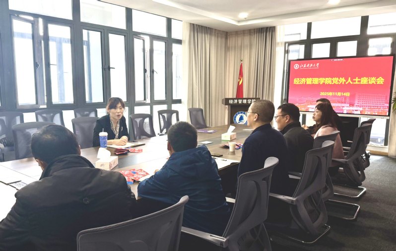11月14日,经济管理学院召开党外人士座谈会,学院农工党党员崔健波、九三学社社员赵士南和李军陶、无党派人士王建刚等参加。座谈会由学院党委书记尹洁主持。