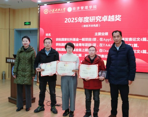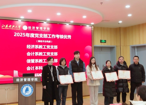 会议第三阶段,大会对2025年度学院优秀党支部、优秀教研系、“管理与服务类”先进个人以及教学卓越奖、研究卓越奖获奖者进行了隆重表彰。学院领导为受表彰集体和个人颁发奖杯和荣誉证书,勉励全体教职工以先进为榜样,凝心聚力,共同为学校和学院的高质量发展汇聚更强合力。