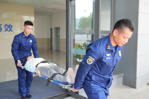 疏散结束后,人员被困场景的实战救援演练随即启动。经管学院部分师生组成临时救援小组,按标准流程开展火情侦查、搜救及伤员转移。临时救援小组分工明确,迅速定位并安全转移“被困人员”进行应急处置。
