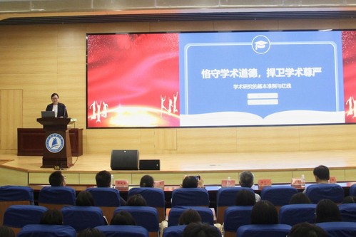 随后,学科办主任鞠可一聚焦“学术研究的基本准则与红线”,为新生筑牢学术道德根基。她从学术道德的定义与行为准则切入,清晰梳理学术不端行为的主要类型,结合具体案例演示学术规范的正确实践方式,并详细解读学术不端的后果与处理流程,让新生深刻认识到坚守学术底线的重要性,为未来科研之路划定“安全边界”。