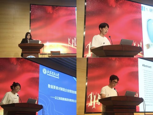 论坛上,王梦琪、张清芳、徐芷旋、刁天乐、徐莉、朱永威、李婉辰、姚成8位同学依次对自己的研究成果进行汇报。其中刁天乐利用熵值-CRITIC-TOPSIS法、耦合协调度模型对我国制造业降碳、减污、扩绿、增长协同发展时空分异及收敛性研究;徐莉结合众包创新与平台治理相关理论,分析众包创新社区治理悖论的主要表现,构建悖论调和视角下的众包创新社区治理机制组态模型,为破解社区治理悖论提供了一种新思路;朱永威考虑由单个制造商和单个平台零售商组成的二级电商供应链,深入探讨了制造商的产品以及延保服务的销售模式选择问题;李婉辰以江南造船集团有限责任公司为研究案例,运用主成分分析与回归模型,系统探究了数据要素对制造企业绩效的影响。3位专家评审从研究方法、学术规范、创新性等方面提出了宝贵意见,帮助同学们进一步完善研究思路,提升学术水平。通过以上8位同学的精彩汇报,也帮助其他同学进一步拓宽了学术视野,丰富了知识体系。