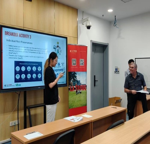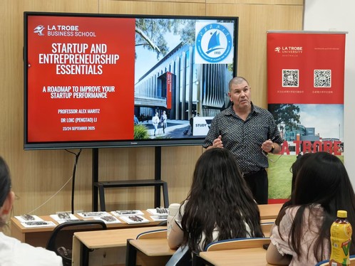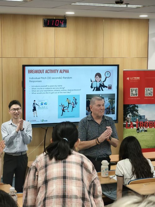 9月23日、24日,江苏科技大学经济管理学院精心策划的“国际商业冲刺营”在长山校区经管院341成功举行。本次活动特邀澳大利亚乐卓博大学商学院Alex Maritz教授、Loic Li博士,以及澳大利亚维多利亚州政府教育服务经理Gabriel Sun、乐卓博大学大中华区域总监Ivy Xu、乐卓博大学华东区域经理Sid Liu担任嘉宾,通过全天高强度、互动式的工作坊,全面提升项目学生的国际商业视野与创新创业能力。本次工作坊共分为两天,工商管理(中澳合作办学)项目2024级项目学生分两批小班参与。为期两天的工作坊分别由工商管理系教师周潇和高文阳主持。