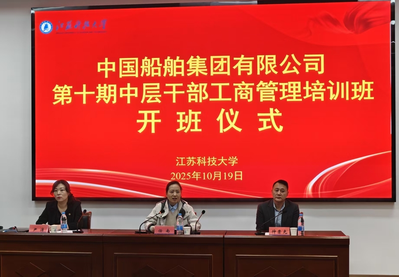 10月19日上午,中国船舶集团有限公司第十期中层干部工商管理培训班开班仪式在我校举行。学校党委常委、副校长任南,继续教育学院书记、院长仲崇光,经济管理学院党委书记尹洁等领导出席仪式,仪式由仲崇光主持。来自集团40家成员单位的53名学员参加为期45天的培训。